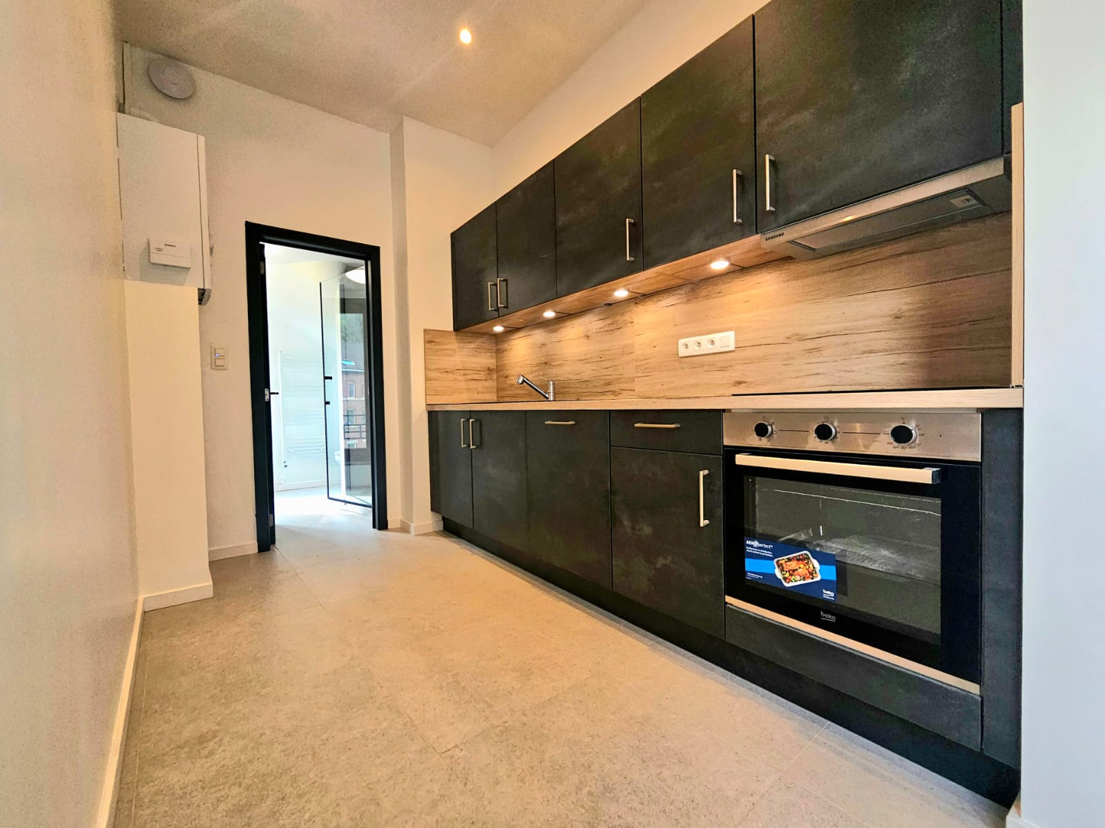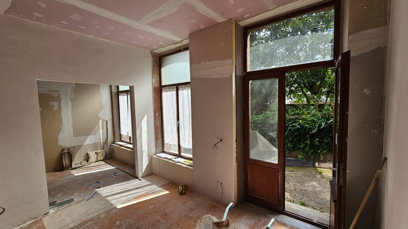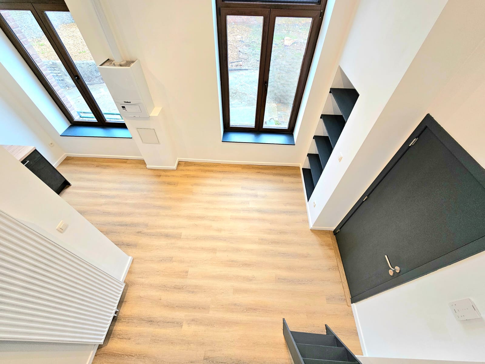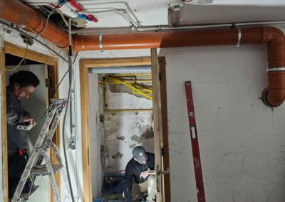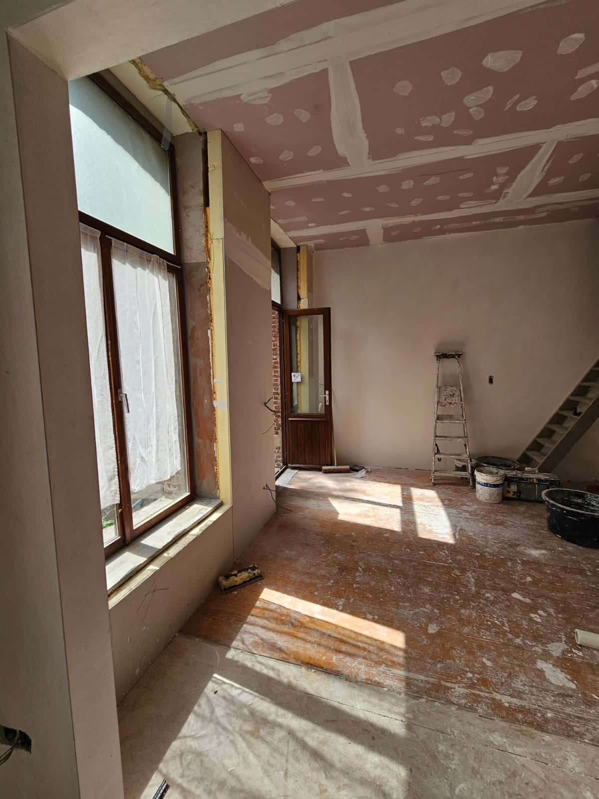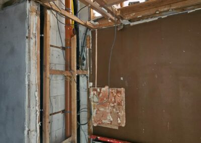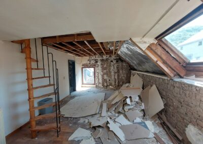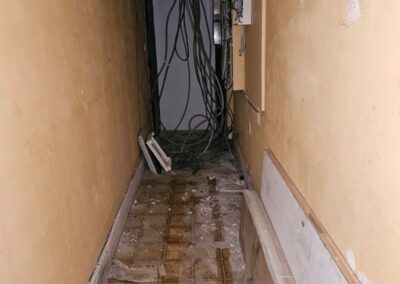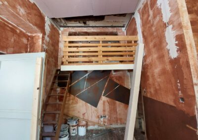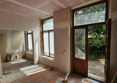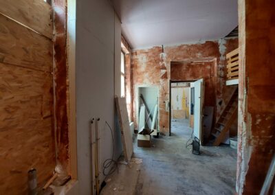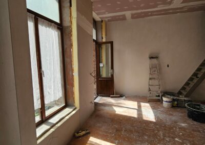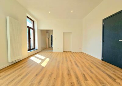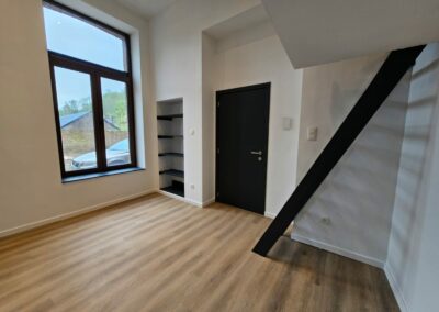 Ce projet à Huy a transformé un immeuble ancien en cinq appartements modernes, tout en respectant les normes strictes de sécurité incendie RF 1h exigées par les pompiers. La rénovation globale a impliqué une mise à jour complète des installations électriques et de plomberie, garantissant ainsi la conformité et la sécurité de chaque logement.