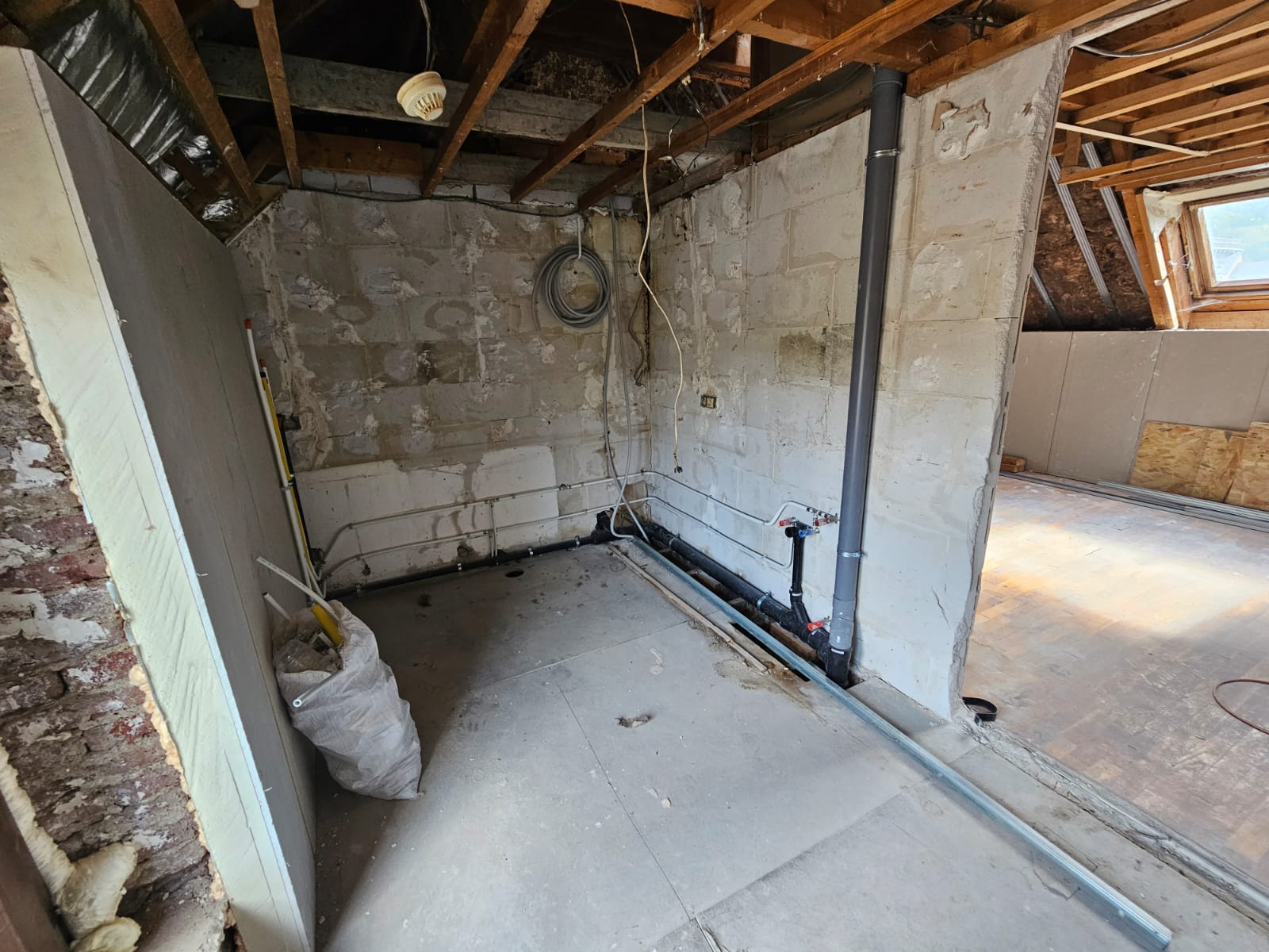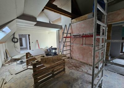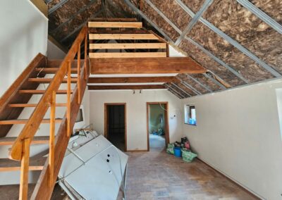 L’isolation a également été une priorité, avec l’utilisation de thermogype pour les murs et de laine de roche pour le toit, répondant aux exigences des primes PEB pour une efficacité énergétique optimale.